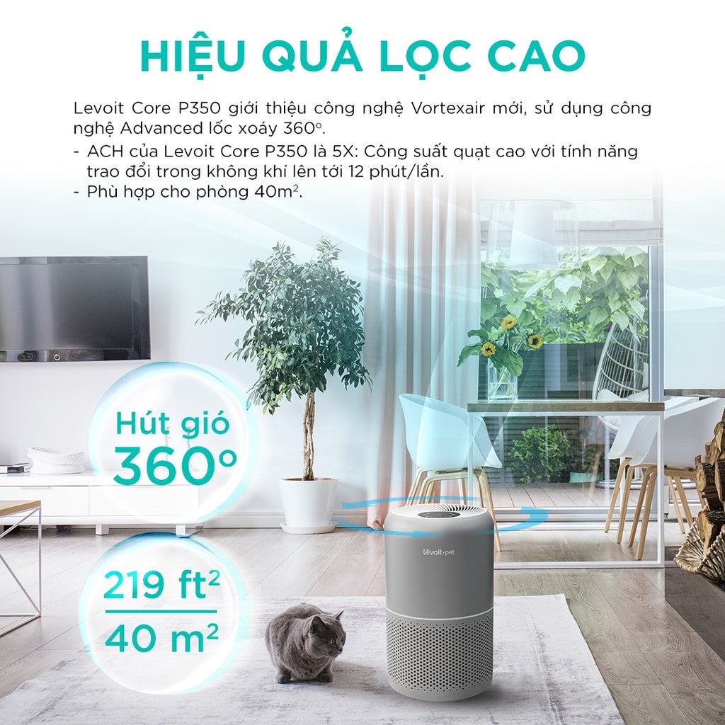Máy lọc không khí Levoit Core P350 được thiết kế dành riêng cho các gia đình nuôi thú cưng, tích hợp hệ thống lọc 3 lớp với màng HEPA 13 giúp loại bỏ hiệu quả bụi bẩn và lông thú, mang lại không gian sống trong lành và an toàn. Sản phẩm được bảo hành trong 24 tháng.