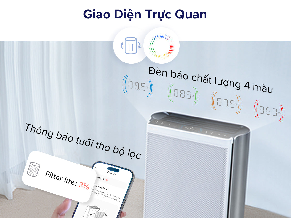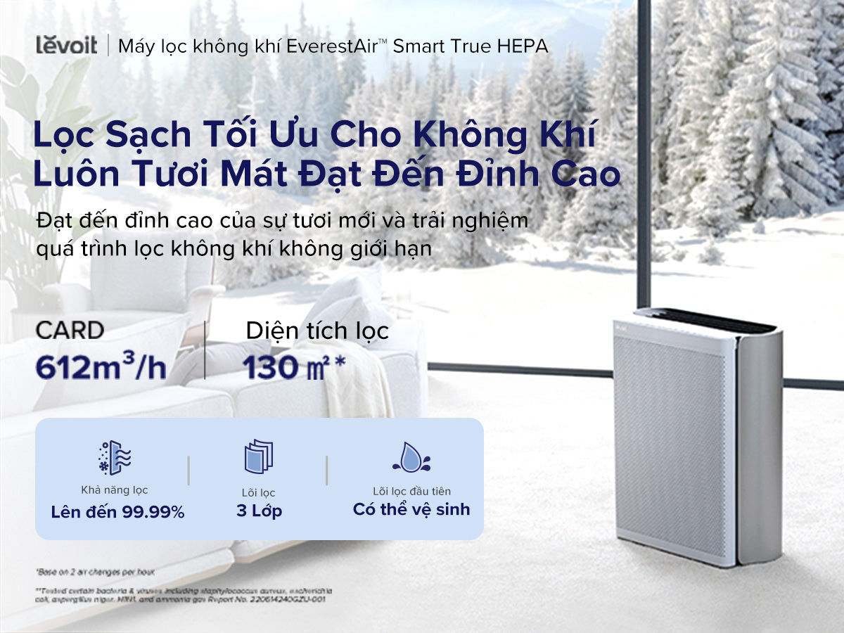 Máy Lọc Không Khí Levoit EverestAir được trang bị bộ lọc 3 giai đoạn, giúp loại bỏ hiệu quả các hạt bụi siêu nhỏ trong không khí. Công nghệ Air Turbo tạo luồng gió xoáy mạnh mẽ kết hợp với cửa hút gió 360 độ, đảm bảo không khí sạch được phân phối đồng đều khắp phòng, loại bỏ bụi bẩn, chất gây dị ứng và mùi hôi hiệu quả.