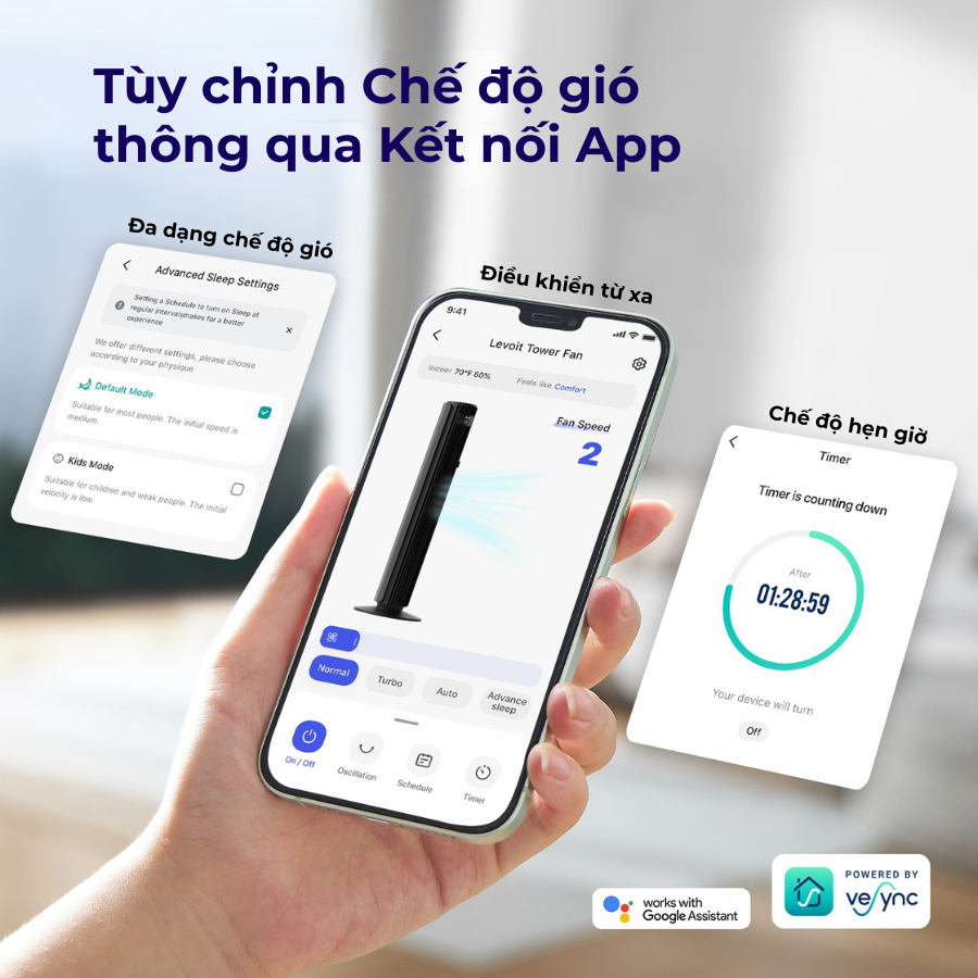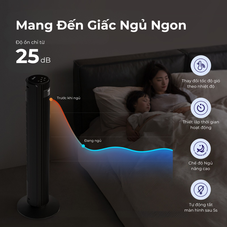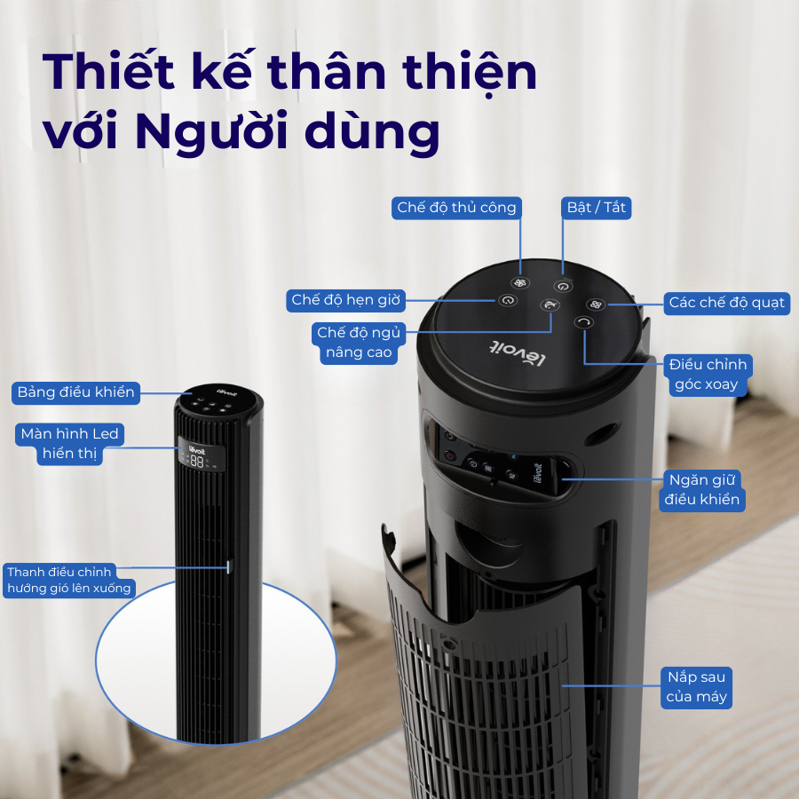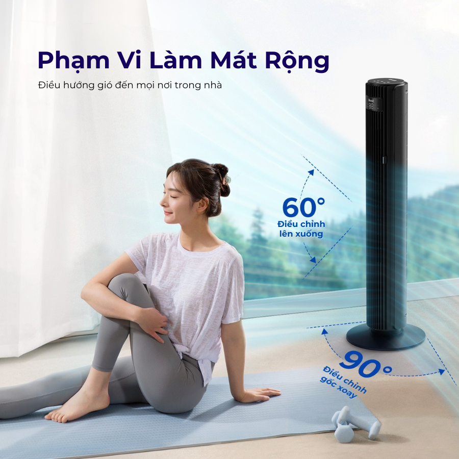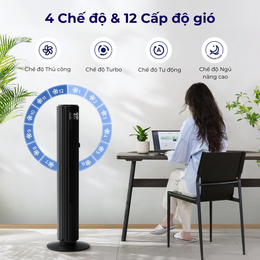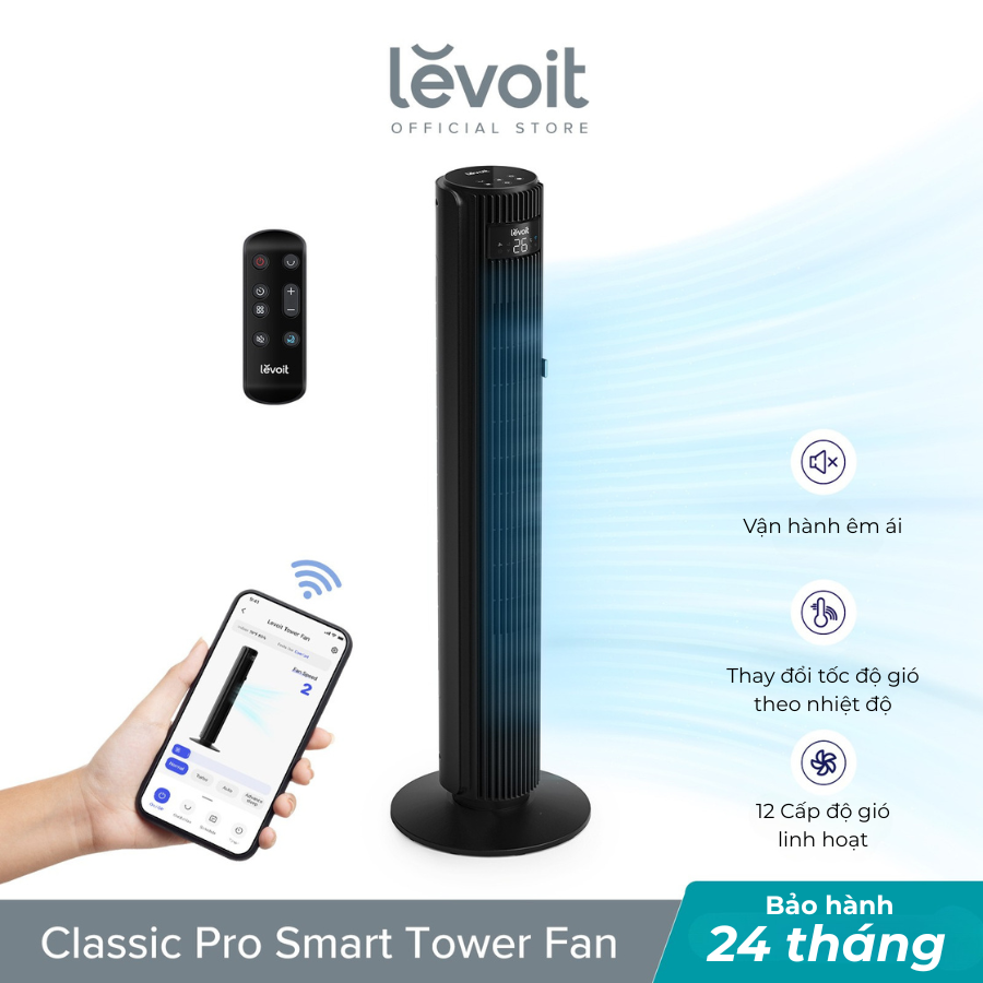 Quạt tháp điều hòa Levoit Smart Wifi 42 inches là thiết bị làm mát thông minh với thiết kế hiện đại và sang trọng. Sở hữu công suất lớn 30W, 12 chế độ gió, khả năng xoay linh hoạt 90°, cùng điều khiển từ xa qua remote hoặc ứng dụng di động tiện lợi. Khi sử dụng kết hợp với điều hòa, quạt giúp làm mát nhanh hơn và tiết kiệm điện năng hiệu quả.